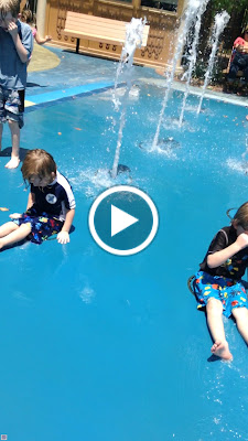 At the Nathanial Jones Splash Pad. Connor is being very silly.