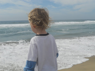 The second day of being in California was much more relaxing. After everyone woke up we went down to the continental breakfast. It was pretty good!! We then went back to our room to get ready for the beach. Yes the beach!! This is something we really miss about living in California. We always had great times at the beach. This day was no different. Kade wasn't even scared of the water anymore. He was jumping right in with Eric.